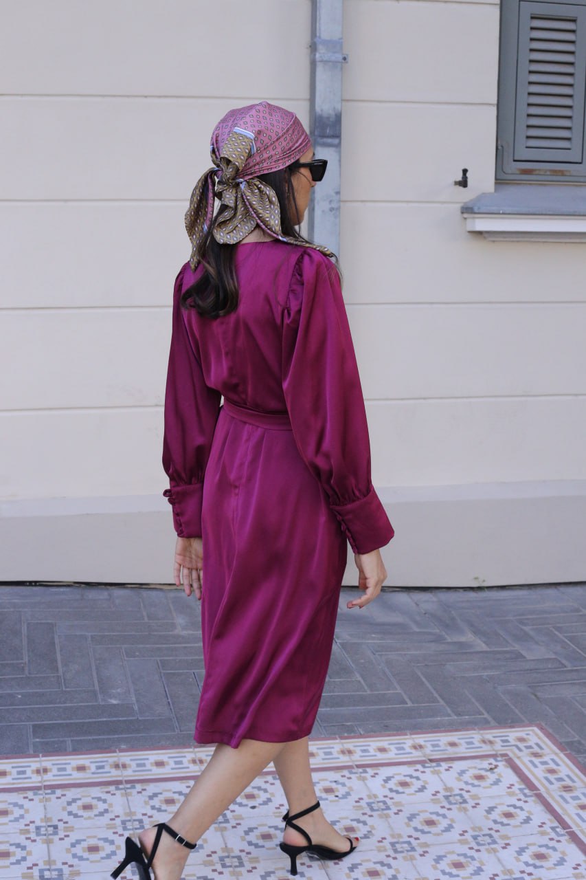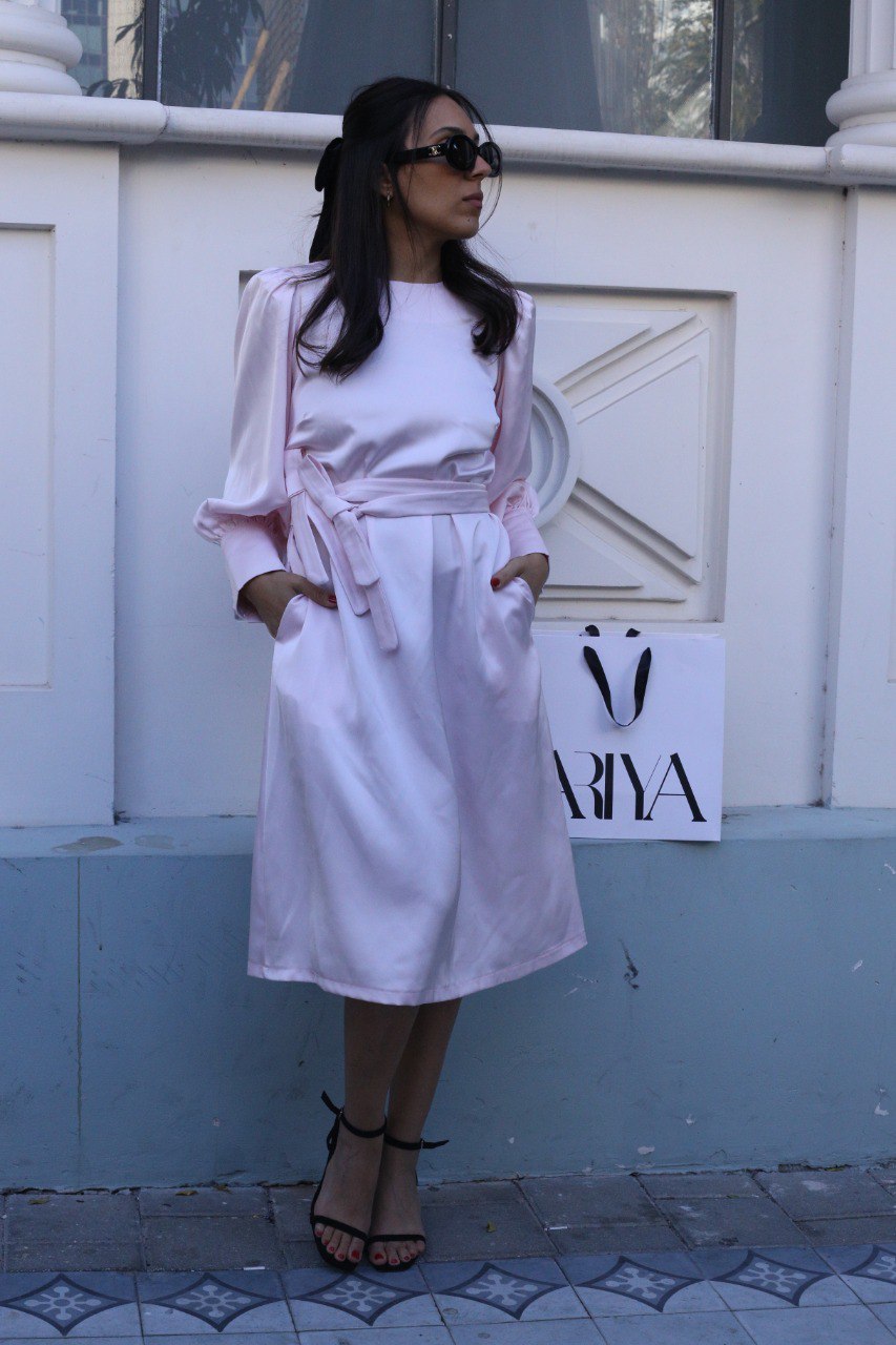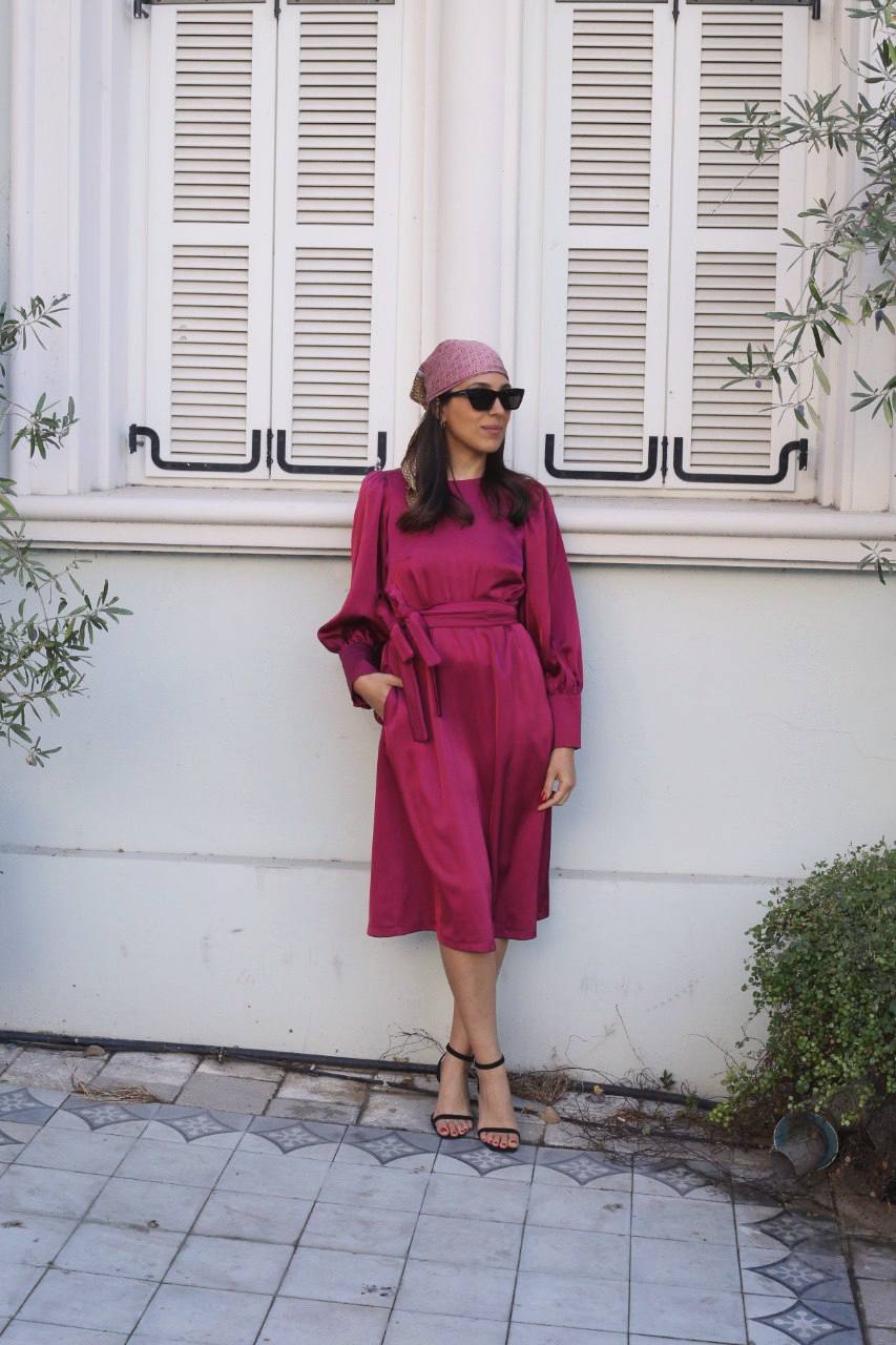 מיוצרת מבד סאטן איכותי בגזרת A בתופסת חגורה מאותו הבד ושרוול מכווץ למראה בובתי לקלאסי.