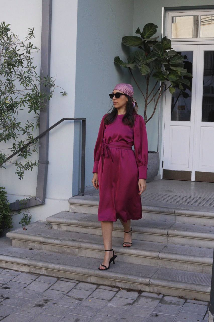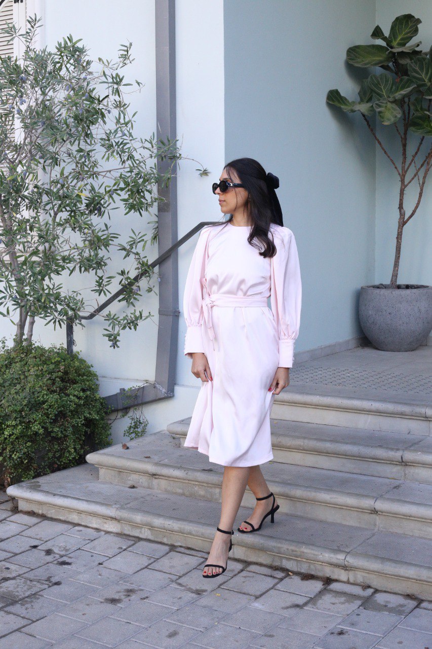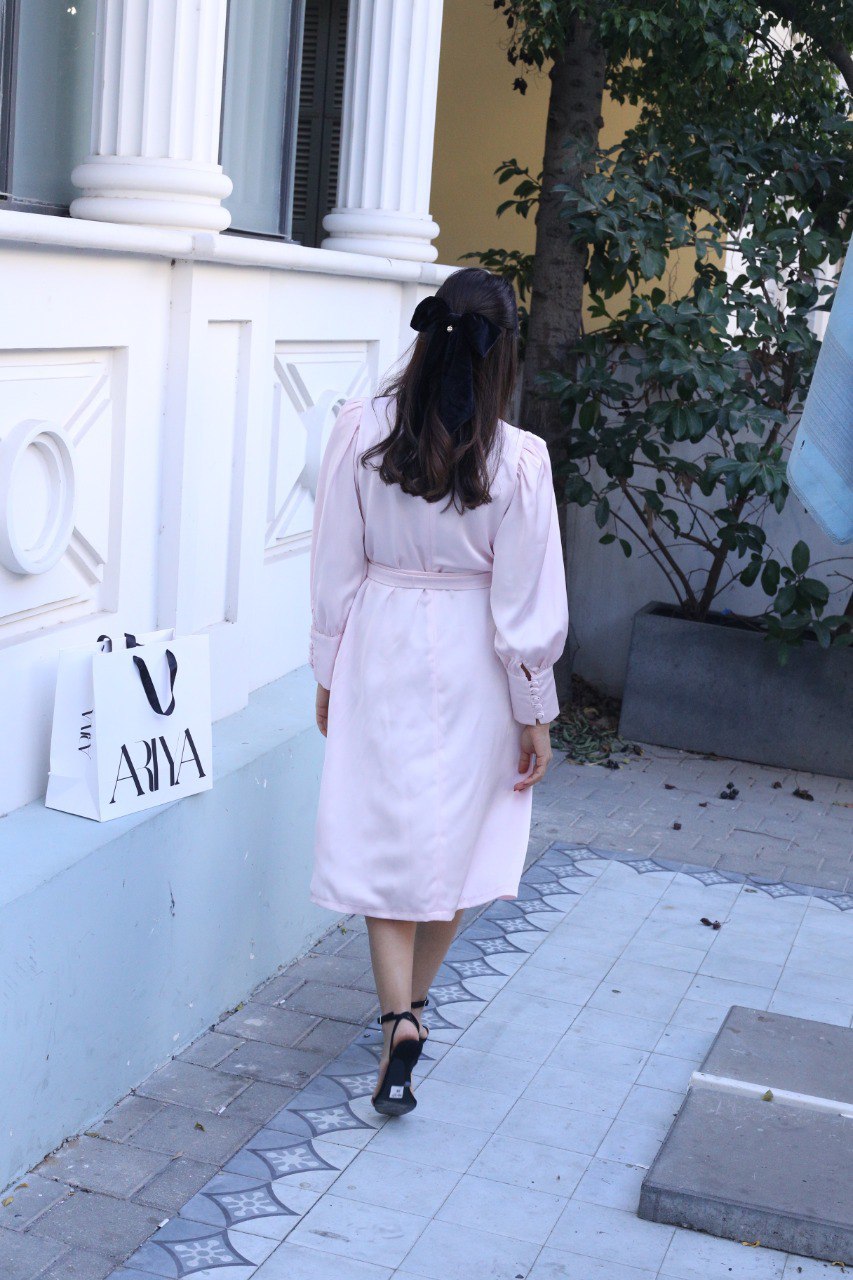 מיוצרת מבד סאטן איכותי בגזרת A בתופסת חגורה מאותו הבד ושרוול מכווץ למראה בובתי לקלאסי.